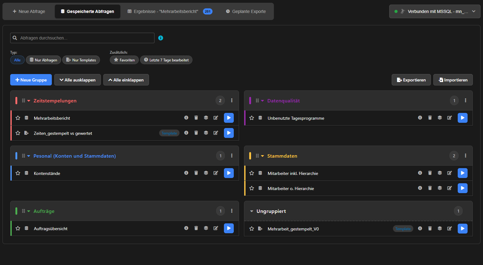 Individuelle Gruppen mit favorisierten Abfragen, sorgen für Übersichtlichkeit - Drag & Drop für schnelle Anpassungen.